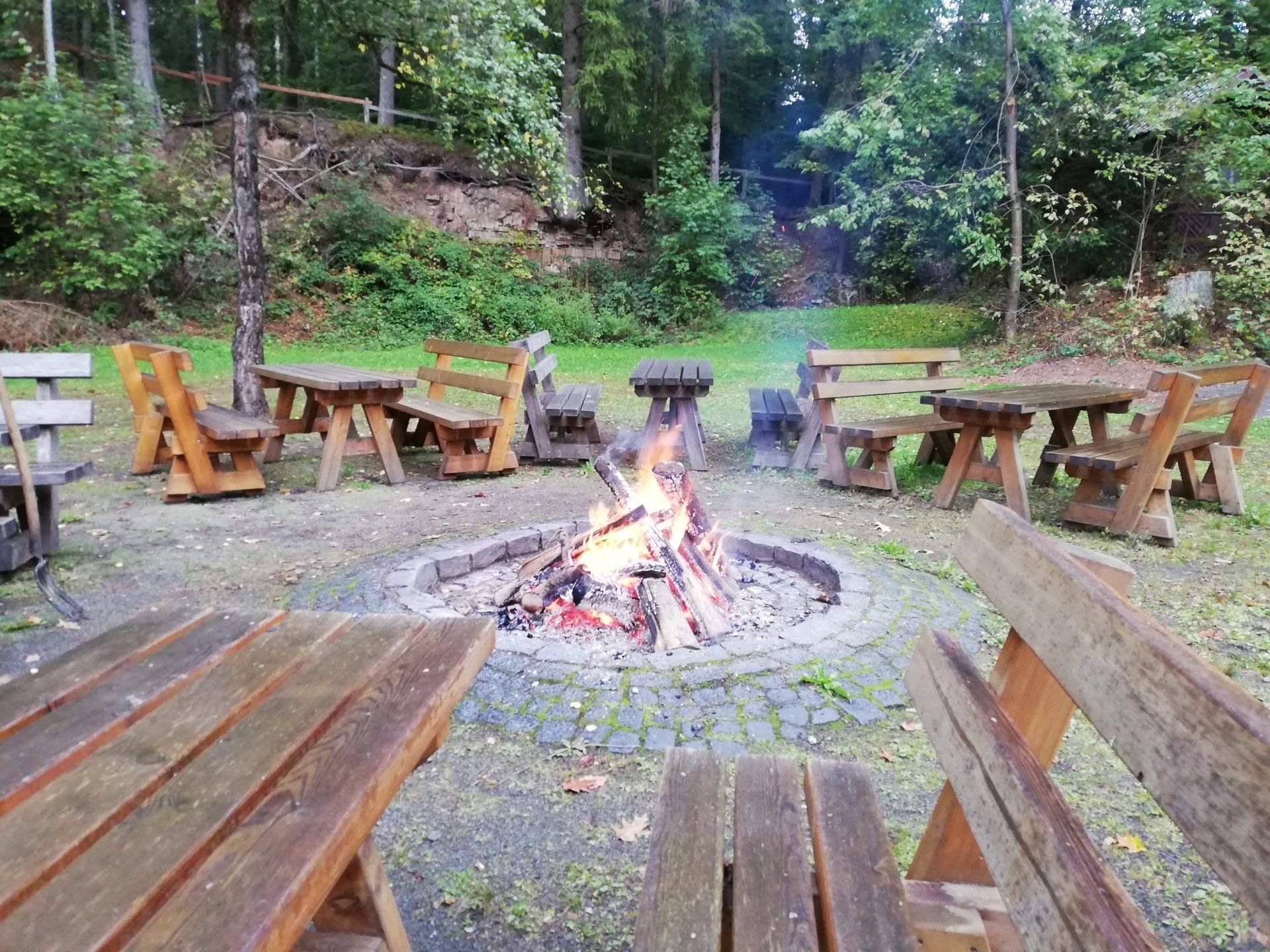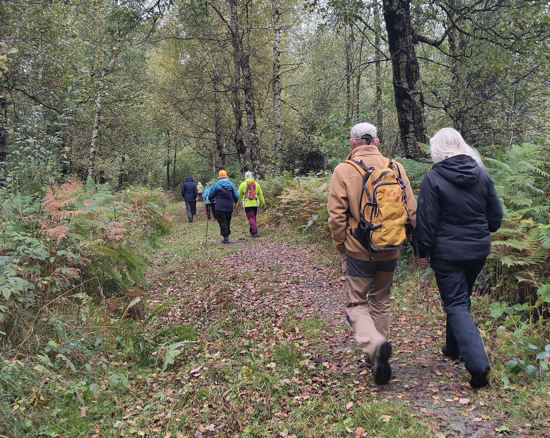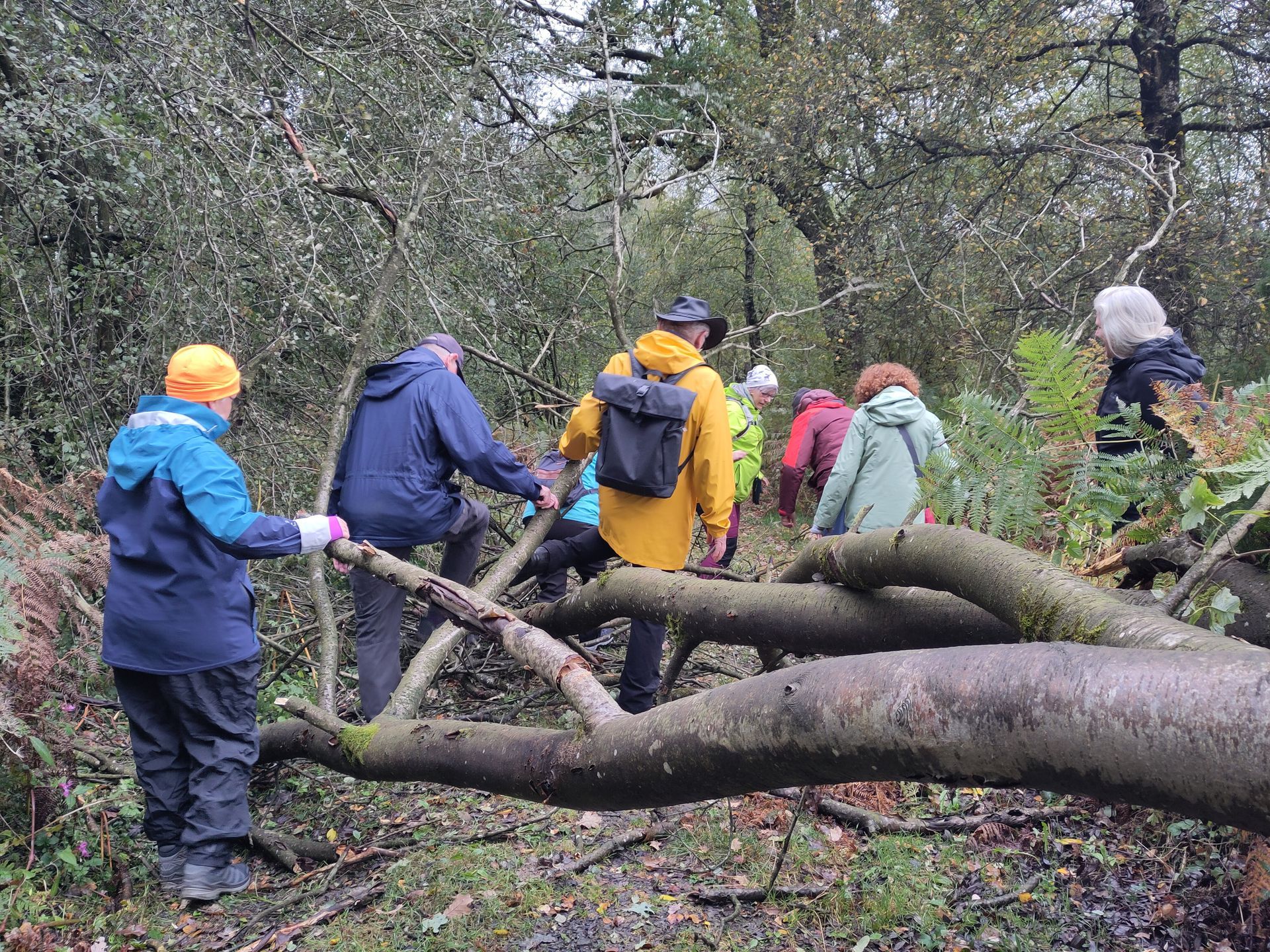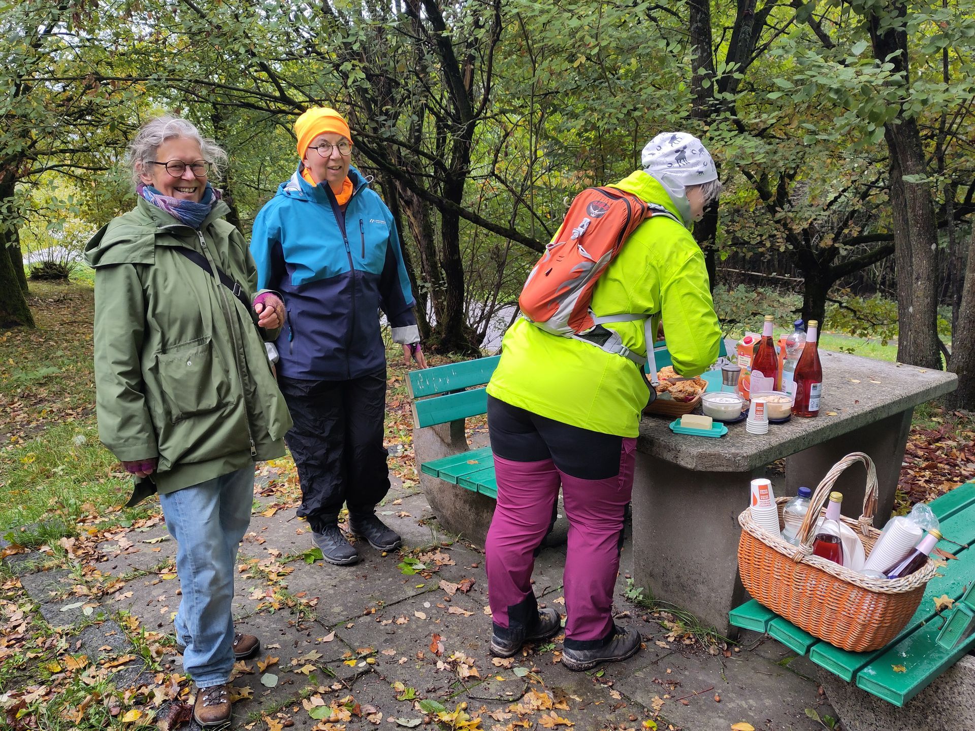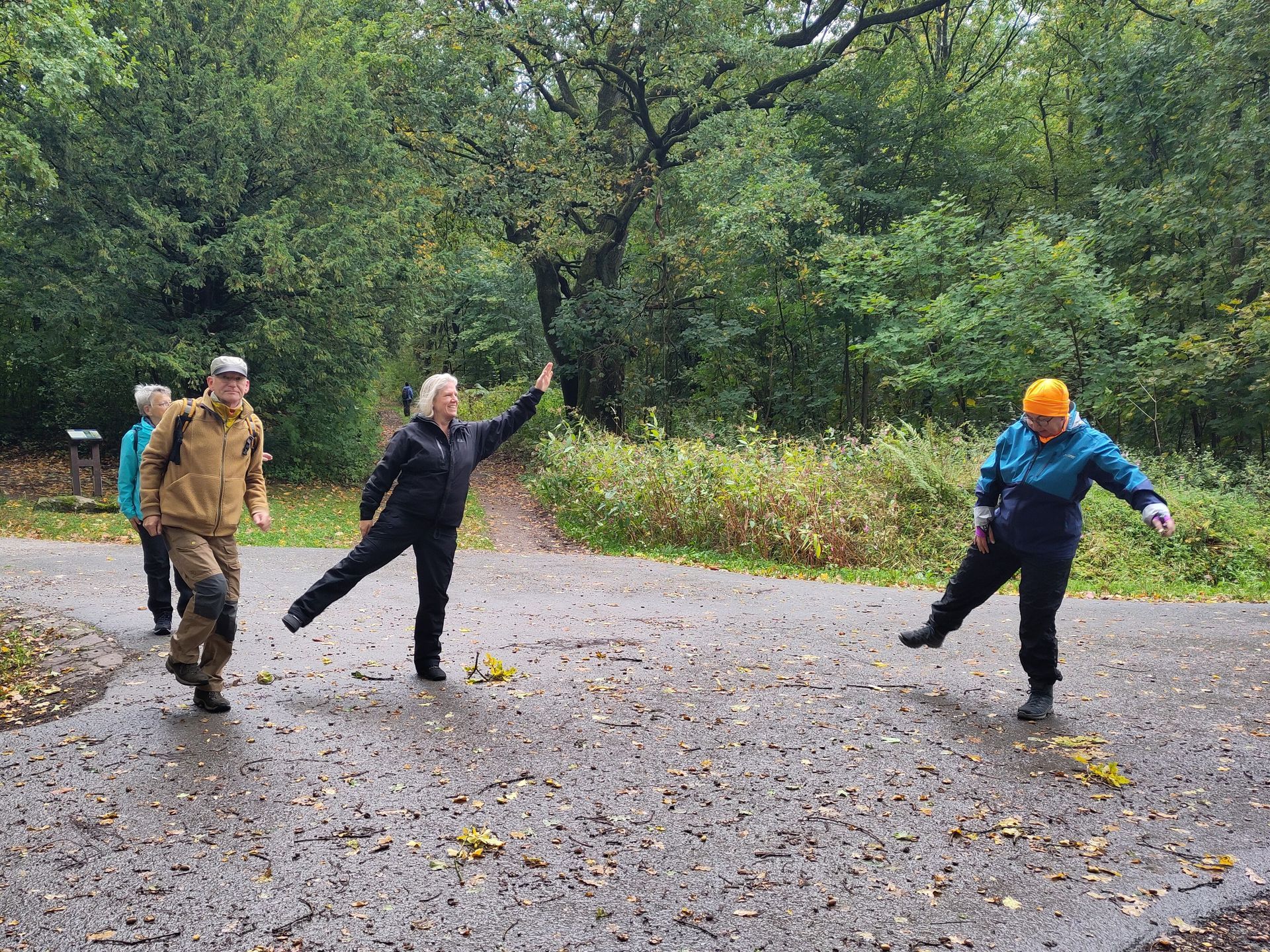 Wanderung mit gymnastischen Übungen, einer Pause mit leckeren Kleinigkeiten, "Hindernisüberwindung" und